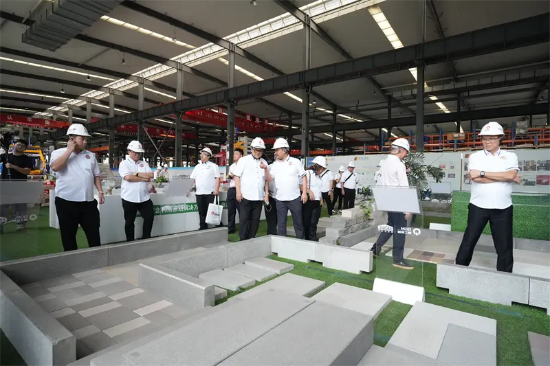 Sa lugar ng display ng sample ng ladrilyo, ang iba't ibang mga permeable bricks, imitasyon na bato bricks, at solidong basura na mga materyales sa gusali ay nakakaakit ng atensyon ng pagbisita sa grupo. Ipinaliwanag ni Fu Binghuang, chairman ng Quangong Machinery Co, Ltd na sa pamamagitan ng teknolohikal na pananaliksik at pag -unlad, Quangong Machinery Co, Ltd. Nagbabago ang basura tulad ng basura ng konstruksyon at mga tailings sa mataas na halaga na idinagdag, mga materyales na palakaibigan sa kapaligiran, na nagtatapon ng higit sa 10 milyong tonelada ng solidong basura taun-taon. Sinuri ni Chairman Liu Guoquan ang lakas at pagkamatagusin ng mga sample ng ladrilyo, na pinupuri ang pagsasagawa ng QGM ng "pagbabago ng basura sa kayamanan" bilang isang "modelo ng pabilog na ekonomiya."