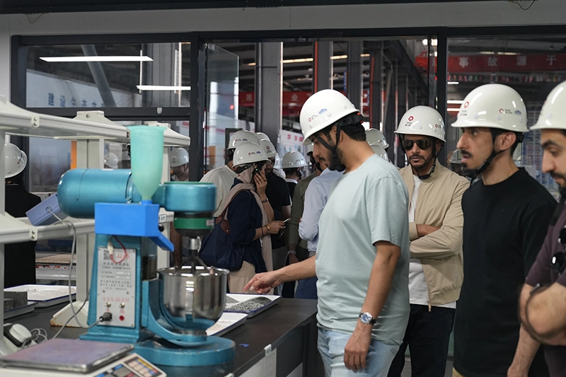 Sa lab na paggawa ng ladrilyo, nasaksihan ng delegasyon ang mga kakayahan ng "pinasadya" na gawa ng Quanzhou na makinarya. Bilang isang base ng pananaliksik at pag-unlad na magkakasamang itinatag kasama ang mga unibersidad tulad ng Fuzhou University at Beijing University of Civil Engineering and Architecture, nilagyan ito ng advanced na materyal na pagsubok at kagamitan sa pag-unlad ng pormula, na may kakayahang magbigay ng mga personalized na solusyon sa paggawa ng ladrilyo batay sa mga katangian ng mga hilaw na materyales, mga kondisyon ng klima, at mga kinakailangan sa proyekto ng rehiyon ng kliyente.